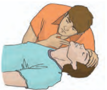 Ладонь на лоб.Двумя пальцами приподнять подбородок.Аккуратно запрокинуть голову.Время оценки дыхания: 10 секунд.